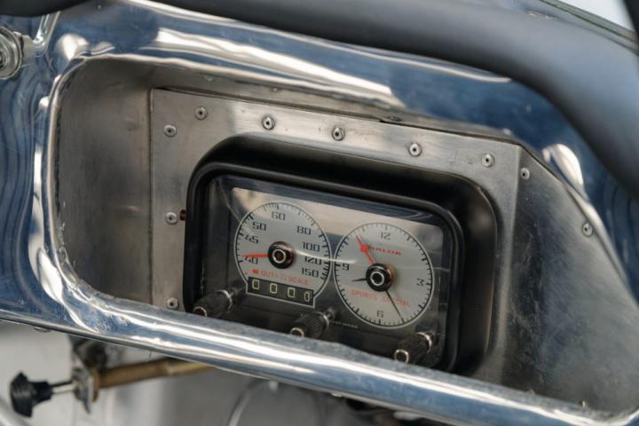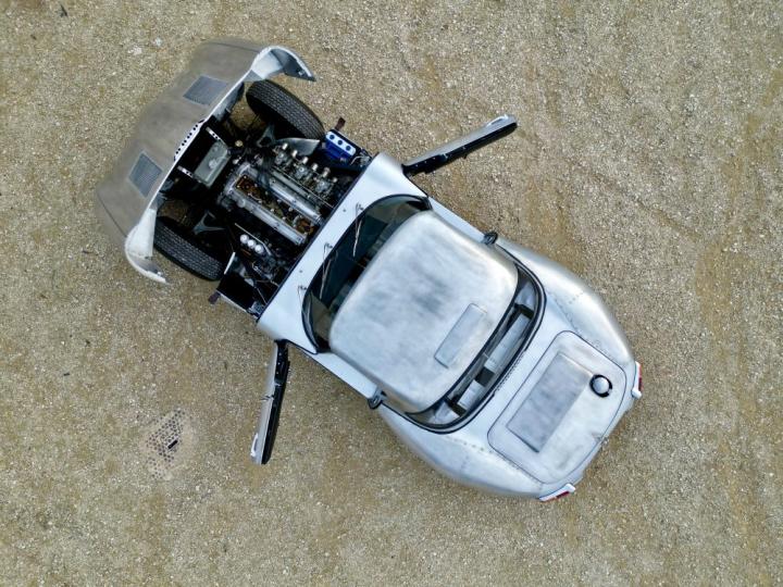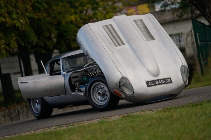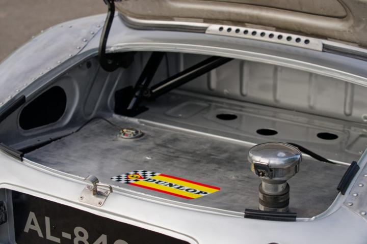 Iconic re-evocation of the hard-top roadster in semi-lightweight configuration, a huge body lightening job with complete stripping of the bodywork, replacement of steel doors and hoods by aluminum elements, as well as the hard top, its original engine equipped with 3 twin weber 45 carburetors, lightened flywheel, crankcase bulkhead, 300 hp, optimized cooling system, Salisbury rear axle with Thomton limited slip, reinforced clutch, 9″ and 11″ magnesium wheels, 4-piston calipers and ventilated front discs, optimized suspension, Halda Tripmaster, fire extinguisher, roll bars, harness, competition tank.